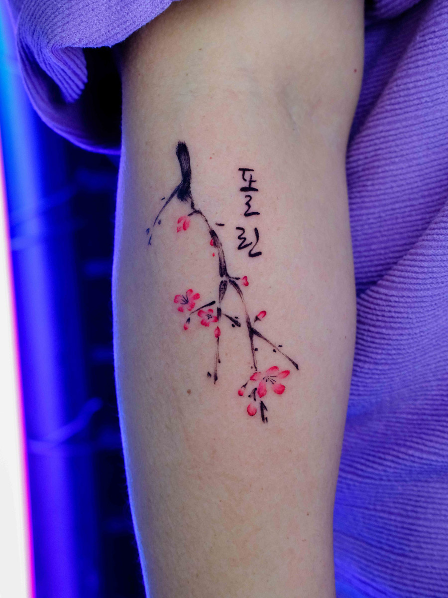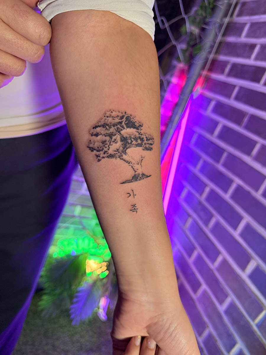 Another visitor shared that a Korean friend taught her a meaningful Hangul word(My name) during the trip. She didn’t want to lose that memory, so she decided on a small branch tattoo paired with Korean lettering.
