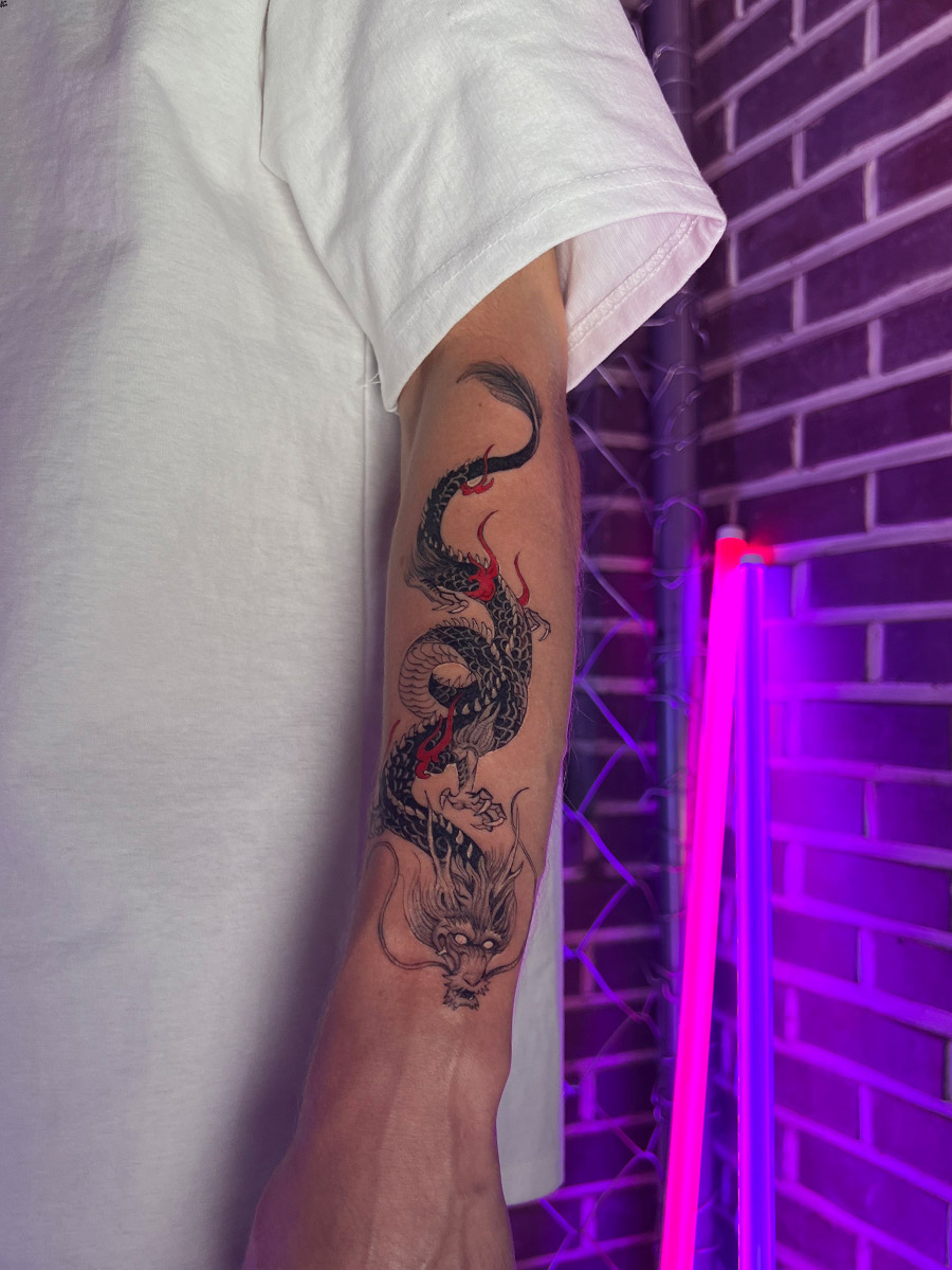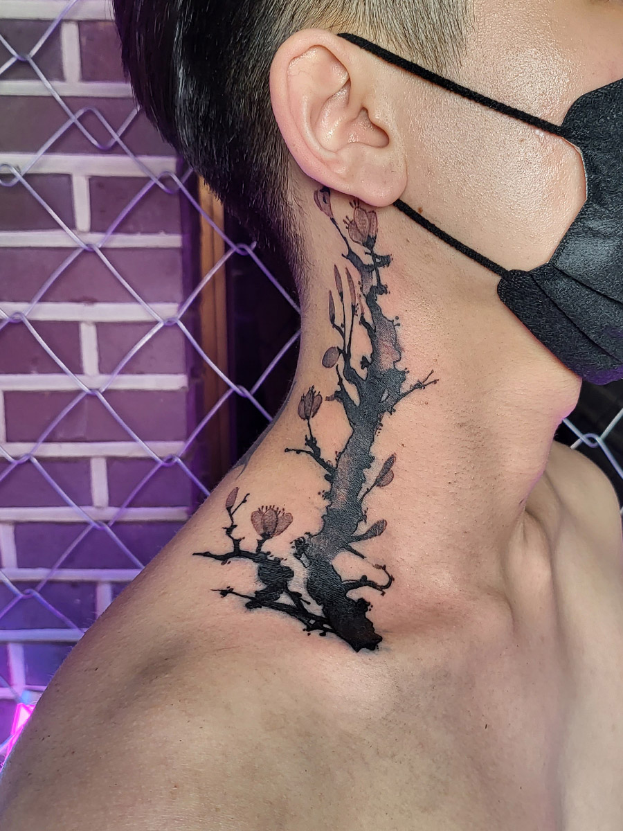 Another defining aspect of Korean tattoo style is how the design follows the body. Rather than forcing symmetry, artists focus on: Natural muscle movement, Neck, shoulder, arm, and leg flow, Long-term visual balance. This philosophy comes from traditional Korean aesthetics, where harmony is valued more than excess.
